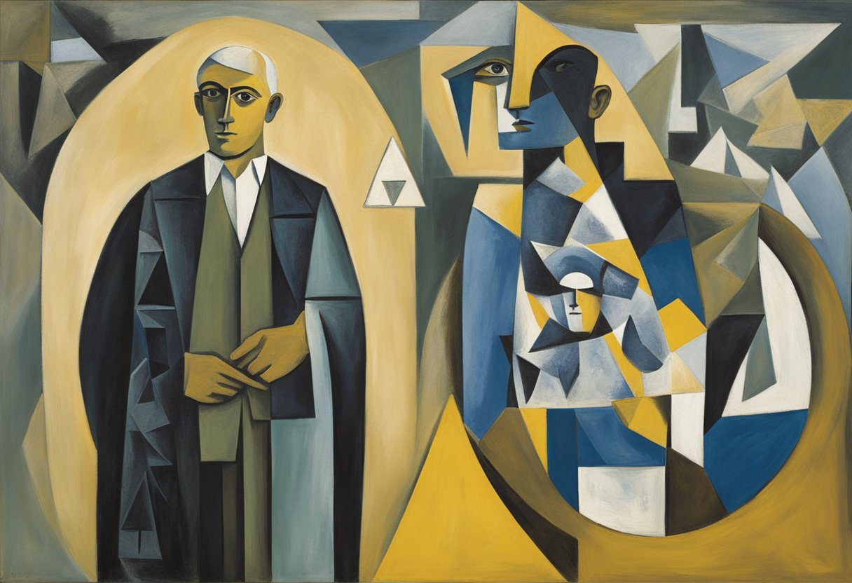 A male figure standing strong, surrounded by symbols of strength and resilience - a shield, a sword, and a roaring lion
